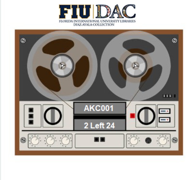 Tape AKC001 Side 2 includes the following content: Left: 1. Oigan Mi Guaguanco (Arsenio Rodriguez), 2. Como Me Gustas (Neno Gonzalez), 3. Por Un Cerro Mejor, 4. Todo Por El Nino, 5. Armoniosos de Amalia, 6. Union de Central Constancias, 7.Danzon (Orquesta Arcano), 8. Paso del mulo, 9. Cositas Sueltas (Neno Sosa), 10. Con Mana se Rompe (Conjunto Modelo), 11. Pinareno, Mi Son Monte Adentro, 12. Labrando la Tierra (Cheo Marquetti), 13. Mi son del monte adentro, 14. Potencia Concentrada (Orquesta Enrique Jorrin), 15. Sabrosito (Sonora Matancera), 16. El Balon Alegre, 17. Yumbale, 18 .Coricoto, 19. Simani (Rene Alverez), 20. Palito de Tendedera, 21. El Ajiaco, 22. Que Dichoso es (Sonora Matancera), 23. Asi es La Humanidad, 24. Guantanamo, 25. Maracaibo Oriental, 26. Me Gusta Mas El Son, 27. Cinturita (Bene More), 28. El Paso del mulo, 29. Esto Se Pone Sabroso (Orquesta Riverside) /. Right: 1. Tiembla Tierra, 2. Chaleco (Orquesta Aragon), 3. Unknown (Orquesta Aragon), 4. El Trago (Orquesta Aragon), 5. Tres Lindas Cubanas (Orquesta Aragon), 6. Chaleco, 7. Noche De Farra, 8. El Satellite, 9. Ritmo de Azucar, 10. Negro de Sociedad.
